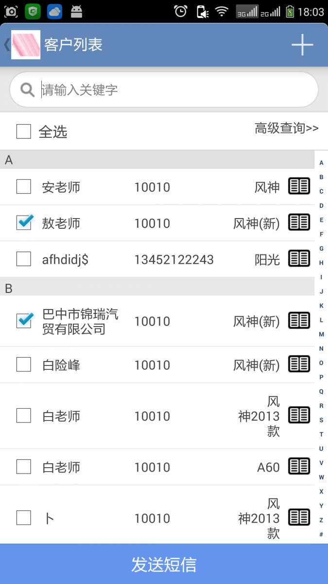 客户列表和发送消息: